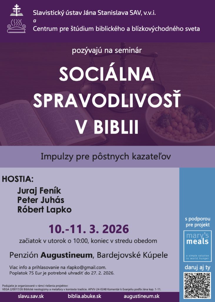 Podujatie sa uskutočnilo v rámci riešenia projektov VEGA 2/0017/26 Biblické neologizmy a metafory v kontexte tradície a APVV-24-0248 Komentár k Evanjeliu podľa Jána kap. 1–11.